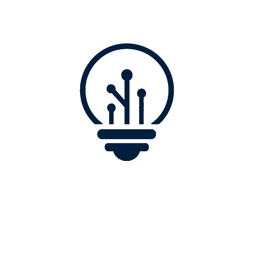 Nosso logotipo representa uma lâmpada (ideias) com circuitos (tecnologia), simbolizando nossa missão de transformar ideias brilhantes em soluções tecnológicas robustas.